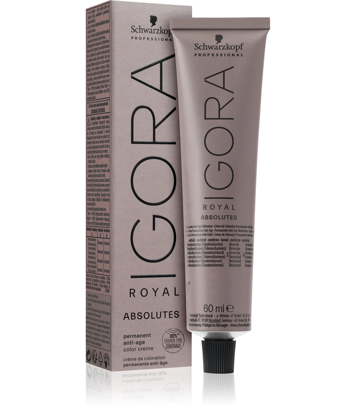 La gama IGORA ROYAL ABSOLUTES, con un Complejo Pro-Age integrado (que contiene Siliamina y Colágeno), está diseñada específicamente para el cabello maduro. Las nuevas direcciones de color incluyen tres favorecedores tonos fríos y beige y un decadente rubio chocolate. Los cuatro tonos contienen el exclusivo Complejo Pro-Age, ofrecen una cobertura del 100 % de las canas e incorporan una tecnología de olor reducido.