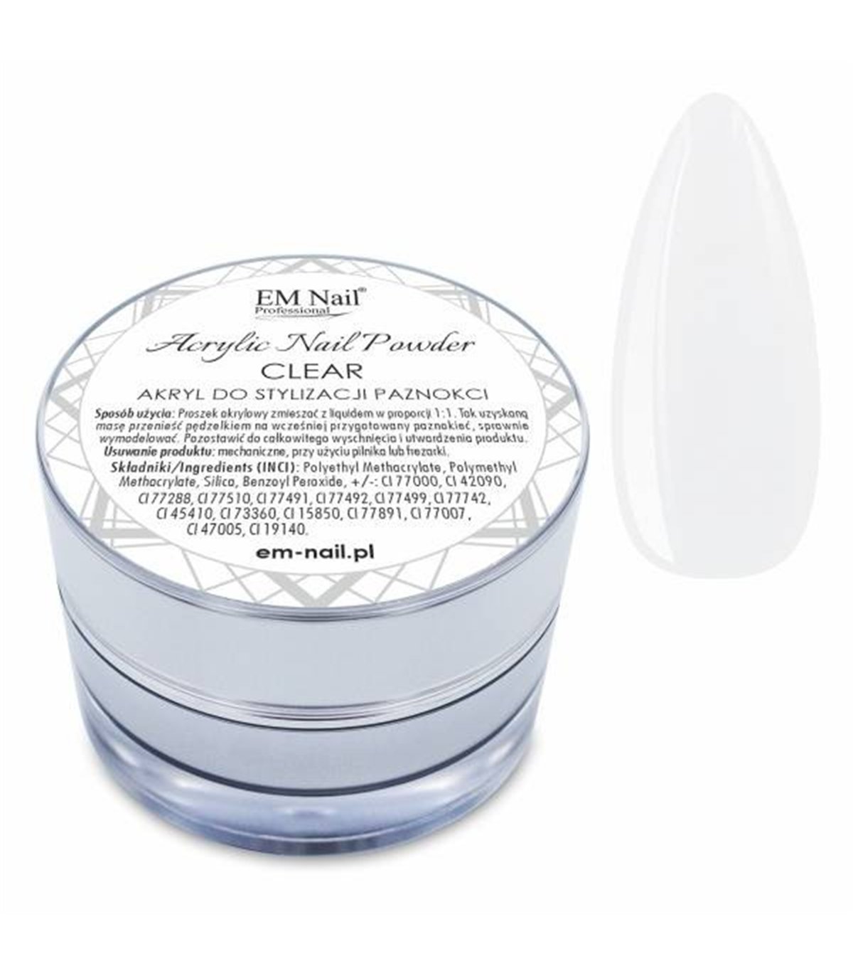 EM NAIL polvos acrílicos Clear transparente 20 gr